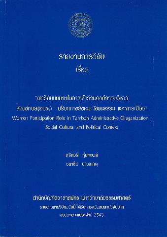 สตรีกับบทบาทในการเข้าร่วมองค์การบริหารส่วนตำบล (อบต.) : บริบททางสังคม วัฒนธรรม และการเมือง