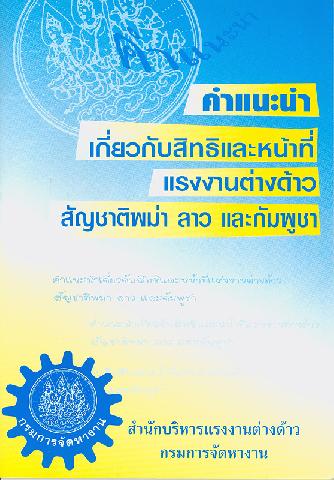 คำแนะนำเกี่ยวกับสิทธิและหน้าที่แรงงานต่างด้าวหลบหนีเข้าเมือง สัญชาติพม่า ลาว และกัมพูชา / โดย สำนักบริหารแรงงานต่างด้าว กรมการจัดหางาน