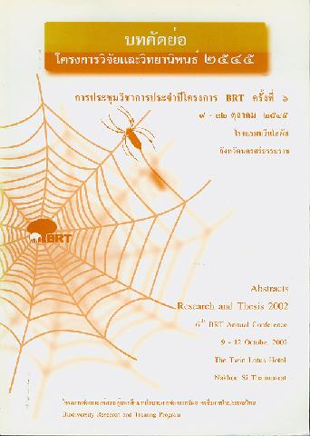 Abstracts research and thesis 2002 6th BRT annual conference 9-12 October 2002 the Twin Lotus Hotel, Nakhon Si Thammarat