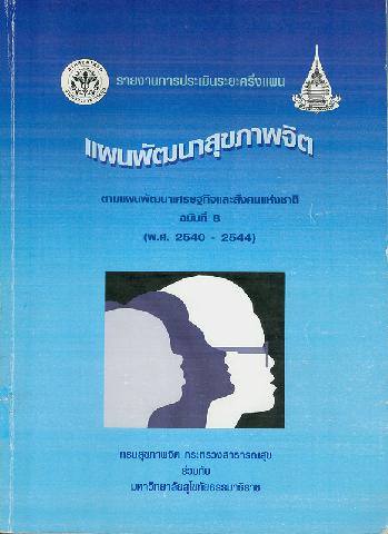 รายงานการประเมินระยะครึ่งแผน แผนพัฒนาสุขภาพจิตตามแผนพัฒนาเศรษฐกิจและสังคมแห่งชาติ ฉบับที่ 8 (พ.ศ. 2540-2544) คณะผู้จัดทำและเรียบเรียงกาญจนา วัธนสุนทร ... และคนอื่น ๆ