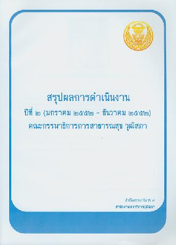 245 00 ^aสรุปผลการดำเนินงาน ปีที่ 2 (มกราคม 2552 - ธันวาคม 2552) คณะกรรมาธิการการสาธารณสุข วุฒิสภา /^cสำนักกรรมาธิการ 3 สำนักงานเลขาธิการวุฒิสภา