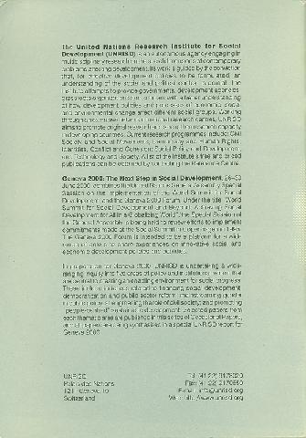 Geneva : United Nations Research Institute for Social Development, [2000].