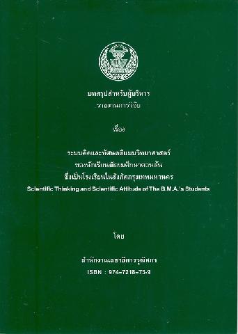 บทสรุปสำหรับผู้บริหารรายงานการวิจัยเรื่อง ระบบคิดและทัศนคติแบบวิทยาศาสตร์ของนักเรียนมัธยมศึกษาตอนต้น ซึ่งเป็นโรงเรียนในสังกัดกรุงเทพมหานคร/ โดย สำนักงานเลขาธิการวุฒิสภา
