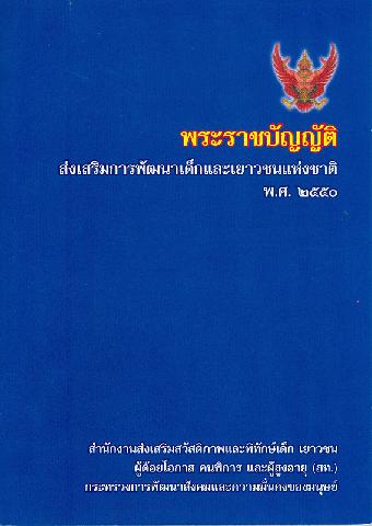 245 00 ^aพระราชบัญญัติส่งเสริมการพัฒนาเด็กและเยาวชนแห่งชาติ พ.ศ. 2550/^cสำนักงานส่งเสริมสวัสดิภาพและพิทักษ์เด็ก เยาวชนผู้ด้อยโอกาส คนพิการและผู้สูงอายุ