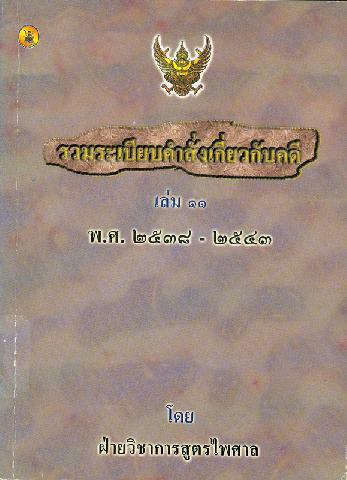 รวมระเบียบ คำสั่ง เกี่ยวกับคดี พ.ศ. 2538 - 2543 เล่ม 11 / โดย ฝ่ายวิชาการสูตรไพศาล