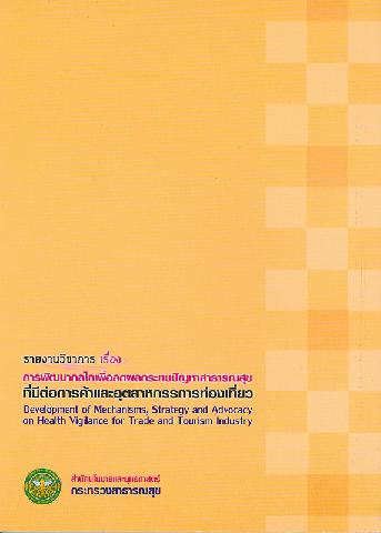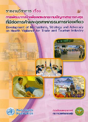 รายงานวิชาการเรื่อง การพัฒนากลไกเพื่อลดผลกระทบปัญหาสาธารณสุขที่มีต่อการค้าและอุตสาหกรรมการท่องเที่ยว / สำนักนโยบายและยุทธศาสตร์ กระทรวงสาธารณสุข