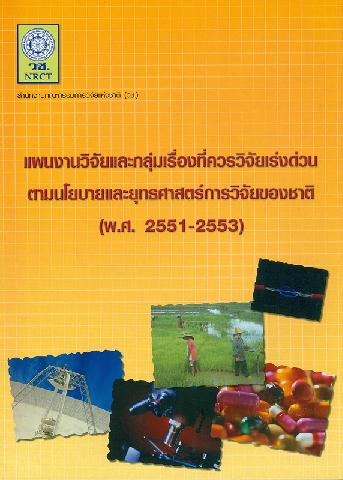 แผนงานวิจัยและกลุ่มเรื่องที่ควรวิจัยเร่งด่วนตามนโยบายและยุทธศาสตร์การวิจัยของชาติ (พ.ศ. 2551-2553) สำนักงานคณะกรรมการวิจัยแห่งชาติ