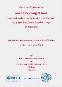 The 10 burning issues : related to the government use of patents on three patented essential drugs in Thailand document to support strengthening of social wisdom on the issue of drug patent