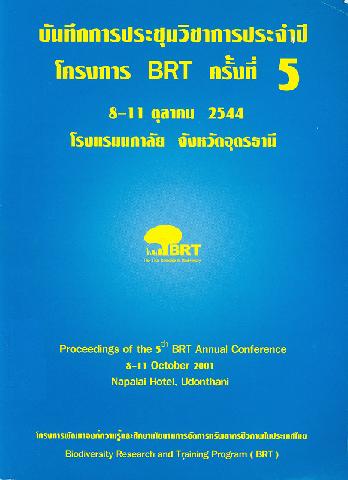 บันทึกการประชุมวิชาการประจำปี โครงการ BRT, ครั้งที่ 5, 8-11ตุลาคม 2544 โรงแรมนภาลัย จังหวัดอุดรธานี บรรณาธิการ วิสุทธิ์ ใบไม้ และ รังสิมา ตัณฑเลขา