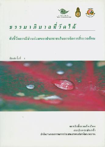 ธรรมาภิบาลที่วัดได้ : ตัวชี้วัดการมีส่วนร่วมของประชาชนในการจัดการสิ่งแวดล้อม / [จัดทำโดย] ฝ่ายเมืองและสิ่งแวดล้อม สถาบันสิ่งแวดล้อมไทย ; คณะนักวิจัย, สมฤดี นิโครวัฒนยิ่งยง ... [และคนอื่นๆ]