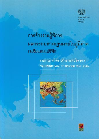 การจ้างงานผู้พิการผลกระทบทางกฎหมายในภูมิภาคเอเซียและแปซิฟิก : รายงานการให้คำปรึกษาระดับโครงการ กรุงเทพมหานคร 17 มกราคมพ.ศ.2546 / สำนักงานแรงงานระหว่างประเทศ กระทรวงการพัฒนาสังคมและความมั่นคงของมนุษย์