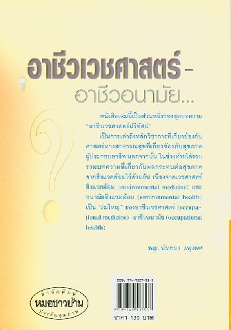 | รายการใกล้เคียง ผู้แต่ง [ฉันทนา ผดุงทศ] หัวเรื่อง [อาชีวอนามัย] หัวเรื่อง [อาชีวเวชศาสตร์] หัวเรื่อง [อนามัยสิ่งแวดล้อม] หัวเรื่อง [สาธารณสุข] |