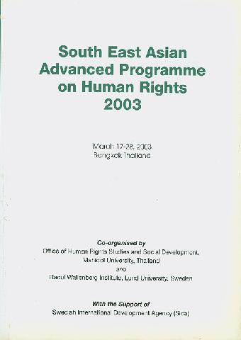 South East Asian advanced programme on human rights 2003 : March, 17-28 2003, Bangkok Thailand co-organised by Office of Human Rights Studies and Social Development, Mahidol University, Thailand and Raoul Wallenberg Institute, Lund University, Sweden