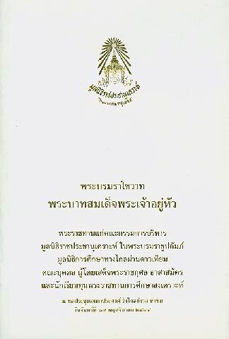 พระบรมราโชวาทพระบาทสมเด็จพระเจ้าอยู่หัว พระราชทานแก่คณะกรรมการบริหารมูลนิธิราชประชานุเคราะห์ ในพระบรมราชูปถัมภ์ มูลนิธิการศึกษาทางไกลผ่านดาวเทียม คณะบุคคล ผู้โดยเสด็จพระราชกุศล อาสาสมัครและนักเรียนทุนพระราชทานการศึกษาสงเคราะห์ ณ หอประชุมอเนกประสงค์ วังไกลกังวล หัวหิน วันจันทร์ที่ 19 พฤศจิกายน 2544 / มูลนิธิราชประชานุเคราะห์ ในพระบรมราชูปถัมภ์