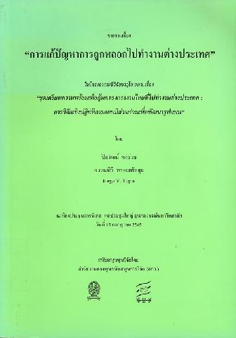 รายงานเรื่อง การแก้ปัญหาการถูกหลอกไปทำงานต่างประเทศ / โดย ปิยวัฒน์ คงช่วย, พรรณสิริ พรหมพันธุม และ Jorge V. Tigno