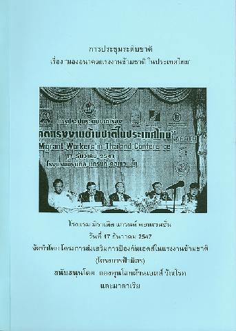 การประชุมระดับชาติ เรื่อง "มองอนาคตแรงงานข้ามชาติในประเทศไทย" วันที่ 17 ธันวาคม 2547 โรงแรมมิราเคิล แกรนด์ คอนเวนชัน / จัดทำโดย โครงการส่งเสริมการป้องกันเอดส์ในแรงงานข้ามชาติ (โครงการฟ้ามิตร)