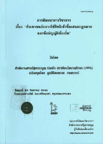 ประชาชนกับการใช้สิทธิเข้าชื่อเสนอกฎหมายและข้อบัญญัติท้องถิ่น (2544 : กรุงเทพฯ)