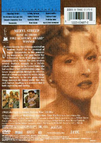 Summary: Aspiring author Stingo (Peter MacNicol) shares a Brooklyn boarding house with winsome Polish émigré Sophie (Meryl Streep) and her mercurial lover, Nathan (Kevin Kline) -- a union unsettled by Nathan's violent behavior and Sophie's disturbing recollections of her wartime experience. Stingo discovers that Sophie is a fraud, though, when her accounts of her stint at a Nazi concentration camp unravel, laying bare the real source of her torment.