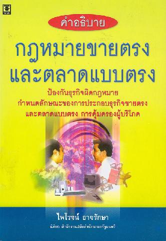 คำอธิบายกฎหมายขายตรงและตลาดแบบตรง : ป้องกันธุรกิจผิดกฎหมาย กำหนดลักษณะของการประกอบธุรกิจขายตรงและตลาดแบบตรง การคุ้มครองผู้บริโภค ไพโรจน์ อาจรักษา