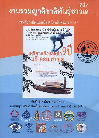 245 00 ^aงานรวมญาติชาติพันธุ์ชาวเล ปีที่ 8 :^bเหลียวหลังแลหน้า 9 ปี มติ ครม.ชาวเล, วันที่ 1-2 ธันวาคม 2561 ณ สวนอนุสรณ์สึนามิ บ้านน้ำเค็ม ต.บางม่วง อ.ตะกั่วป่า จ.พังงา/^cนฤมล อรุโณทัย, พลาเดช ณ ป้อมเพชร, อุษา โคตรศรีเพรช, สุวศรี แก่นบุญ