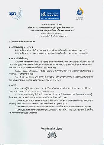 กรุงเทพฯ : สมาคมเพื่อป้องกันการทรมาน, 2555.