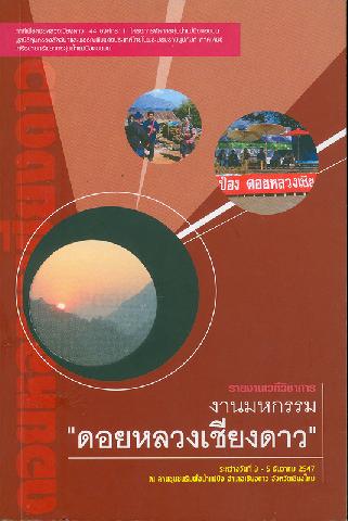 รายงานเวทีวิชาการงานมหกรรม "ดอยหลวงเชียงดาว" ระหว่างวันที่ 3-5 ธันวาคม 2547 ณ ลานชุมชนริมฝั่งน้ำแม่ปิง อำเภอเชียงดาว จังหวัดเชียงใหม่ จัดโดย ภาคีดอยหลวงเชียงดาว 44 องค์กร, โครงการจัดการลุ่มน้ำแม่ปิงตอนบน, มูลนิธิคุ้มครองสัตว์ป่าและพรรณพืชแห่งประเทศไทยในพระบรมราชินุปถัมภ์ ภาคเหนือ, เครือข่ายทรัพยากรลุ่มน้ำแม่ปิงตอนบน