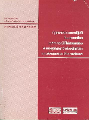 กฎหมายและแนวปฏิบัติในประเทศไทย เฉพาะกรณีที่ไม่สอดคล้องตามอนุสัญญาว่าด้วยสิทธิเด็กและข้อเสนอแนะเพื่อการพัฒนา