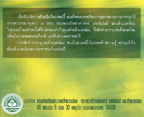 กระทรวงวิทยาศาสตร์ เทคโนโลยี และสิ่งแวดล้อม. กรมส่งเสริมคุณภาพสิ่งแวดล้อม