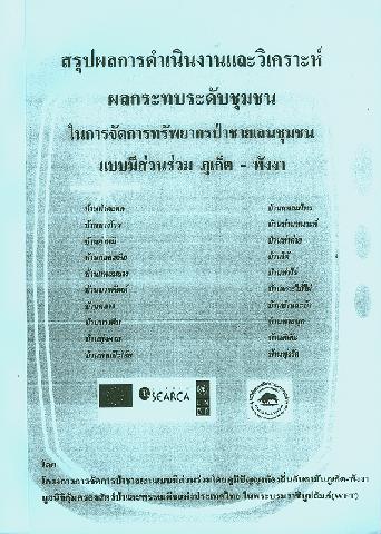 สรุปผลการดำเนินงานและวิเคราะห์ผลกระทบระดับชุมชนในการจัดการทรัพยากรป่าชายเลนชุมชนแบบมีส่วนร่วม ภูเก็ต-พังงา / โดย โครงการจัดการป่าชายเลนแบบมีส่วนร่วมโดยภูมิปัญญาท้องถิ่นอันดามันภูเก็ต-พังงา และมูลนิธิคุ้มครองสัตว์ป่าและพรรณพืชแห่งประเทศไทย ในพระบรมราชินูปถัมภ์ (WFT)