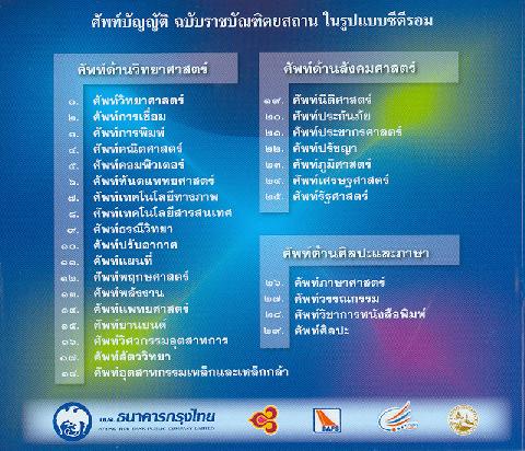 ศัพท์บัญญัติ อังกฤษ-ไทย ไทย-อังกฤษ ฉบับราชบัณฑิตยสถาน รุ่น 1.1 [Computer file] ราชบัณฑิตยสถาน ในพระบรมมหาราชวัง