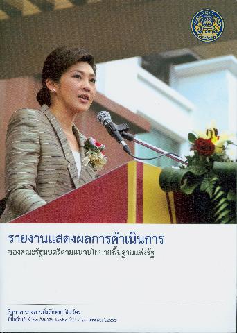 รายงานแสดงผลการดำเนินการของคณะรัฐมนตรีตามแนวนโยบายพื้นฐานแห่งรัฐ รัฐบาล นางสาวยิ่งลักษณ์ ชินวัตร ปีที่หนึ่ง (วันที่ 23 สิงหาคม 2554 ถึงวันที่ 23 สิงหาคม 2555) / คณะกรรมการจัดทำรายงานแสดงผลการดำเนินงานของคณะรัฐมนตรี