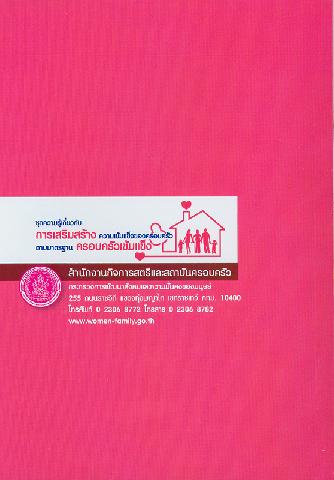 ชุดความรู้เกี่ยวกับการเสริมสร้างความเข้มแข็งของครอบครัวตามมาตรฐานครอบครัวเข้มแข็ง (สำหรับผู้ปฏิบัติงานด้านครอบครัว) ผู้เขียน จรรจา สุวรรณทัต ; สำนักงานกิจการสตรีและสถาบันครอบครัว กระทรวงการพัฒนาสังคมและความมั่นคงของมนุษย์ ร่วมกับ สถาบันวิจัยพฤติกรรมศาสตร์ มหาวิทยาลัยศรีนครินทรวิโรฒ