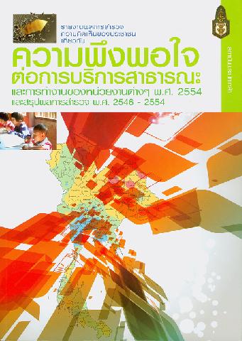 รายงานผลการสำรวจความคิดเห็นของประชาชนเกี่ยวกับความพึงพอใจต่อการบริการสาธารณะ และการทำงานของหน่วยงานต่าง ๆ พ.ศ. 2554 และสรุปผลการสำรวจ พ.ศ. 2546 - 2554 / สำนักวิจัยและพัฒนา สถาบันพระปกเกล้า ; คณะผู้จัดทำ ถวิลวดี บุรีกุล, รัชวดี แสงมหะหมัด และวิศิษฎ ชัชวาลทิพากร