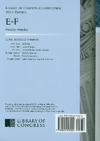 Library of Congress classification. E-F : History: America / prepared by the Policy and Standards Division