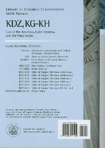 Library of Congress classification. KDZ, KG-KH : Law of the Americas, Latin America, and the West Indies / prepared by the Cataloging Policy and Support Office, Library Services