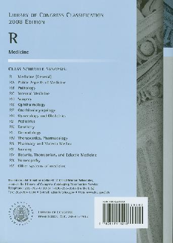 Library of Congress classification. R : Medicine prepared by the Cataloging Policy and Support Office, Library Services