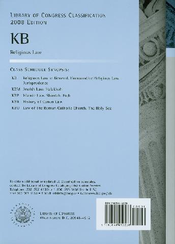 Library of Congress classification. KB : Religious law prepared by the Cataloging Policy and Support Office, Library Services