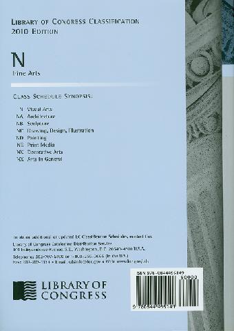 Library of Congress classification. N : Fine arts prepared by the Policy and Standards Division, Libraryof Congress