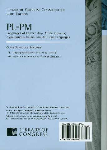 Library of Congress classification. PL-PM : Languages of Eastern Asia, Africa, Oceania ; Hyperborean, Indian, and artificial languages prepared by the Policy and Standards Division
