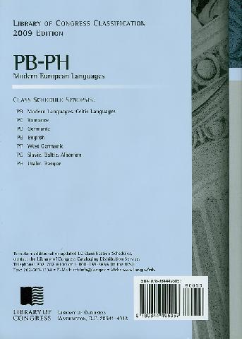 Library of Congress classification. PB-PH : Modern European languages / prepared by the Policy and Standards Division, Library of Congress