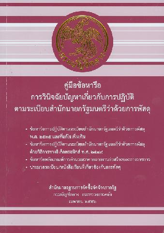 คู่มือข้อหารือการวินิจฉัยปัญหาเกี่ยวกับการปฏิบัติตามระเบียบสำนักนายกรัฐมนตรีว่าด้วยการพัสดุ / สำนักมาตรฐานการจัดซื้อจัดจ้างภาครัฐ กรมบัญชีกลาง