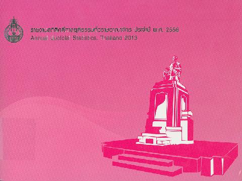 รายงานสถิติคดีศาลยุติธรรมทั่วราชอาณาจักร ประจำปี พ.ศ. 2556 จัดทำโดย กลุ่มระบบข้อมูลและสถิติ สำนักงานแผนงานและงบประมาณ สำนักงานศาลยุติธรรม