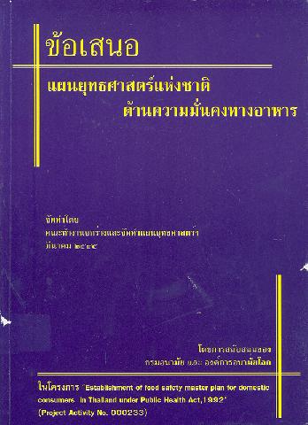 โครงการ "Establishment of food safety master plan fordomestic consumers in Thailand under Public Health Act,1992" (Project activity No.000233).