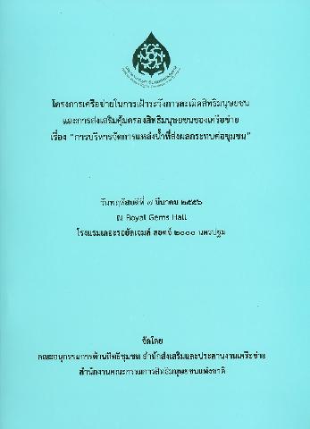 หนังสือทั่วไป | TD313.T48 ค961 2556 c.1 Barcode: 31100100016724 | ►มุมสิ่งพิมพ์สำนักงาน กสม. | บนชั้น ขอยืม | |