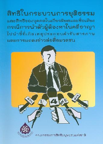 | 245 00 ^aสิทธิในกระบวนการยุติธรรมและสิทธิของบุคคลในเกียรติยศและชื่อเสียง กรณีการนำตัวผู้ต้องหาในคดีอาญาไปนำชี้ที่เกิดเหตุประกอบคำรับสารภาพและการแถลงข่าวต่อสื่อมวลชน/^cคณะอนุกรรมการสิทธิมนุษยชนด้านกฎหมายและการปฏิบัติที่ไม่เป็นธรรม