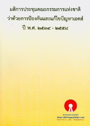 มติการประชุมคณะกรรมการแห่งชาติว่าด้วยการป้องกันและแก้ไขปัญหาเอดส์ พ.ศ. 2534-2558 / บรรณาธิการ, ทวีทรัพย์ ศิรประภาศิริ, วาสนา นิ่มวรพันธุ์
