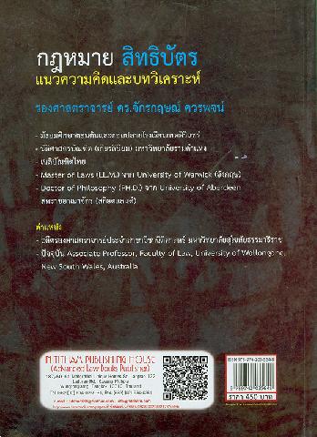 กฎหมายสิทธิบัตร : แนวความคิดและบทวิเคราะห์ จักรกฤษณ์ ควรพจน์