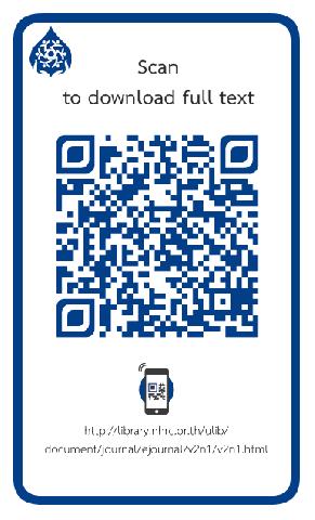 วารสาร | JOU 1001 v.2 n.1 2560 c.5 Barcode: 3006721 | ►มุมวารสาร | บนชั้น ขอยืม | |