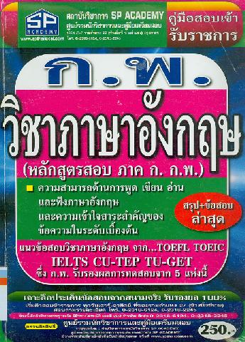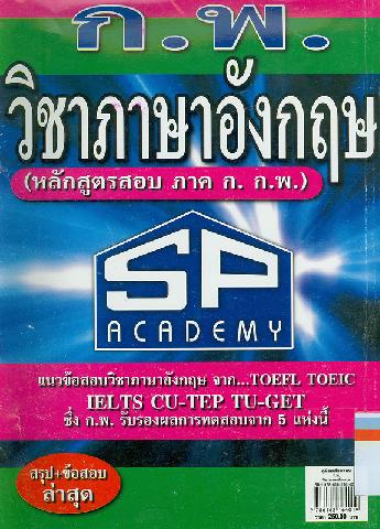 คู่มือเตรียมสอบวิชาภาษาอังกฤษ (หลักสูตรสอบ ภาค ก ก.พ.) สรุป+ข้อสอบ (ล่าสุด)/ รวบรวมและเรียบเรียงโดย ฝ่ายวิชาการ สถาบันวิชาการ SP Academy