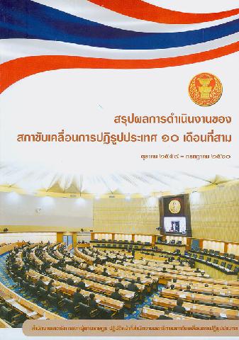 สรุปผลการดำเนินงานของสภาขับเคลื่อนการปฏิรูปประเทศ 10 เดือนที่สาม ตุลาคม 2559 - กรกฎาคม 2560 สำนักงานเลขาธิการสภาผู้แทนราษฎร ปฎิบัติหน้าที่สำนักงานเลขาธิการสภาขับเคลื่อนการปฏิรูปประเทศ / คณะกรรมการจัดทำหนังสือสรุปผลการดำเนินงานของสภาขับเคลื่อนการปฏิรูปประเทศ